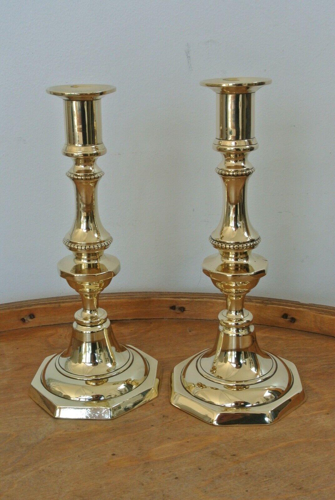 Pair of Victorian Brass Candlesticks Through Pushers c.1890