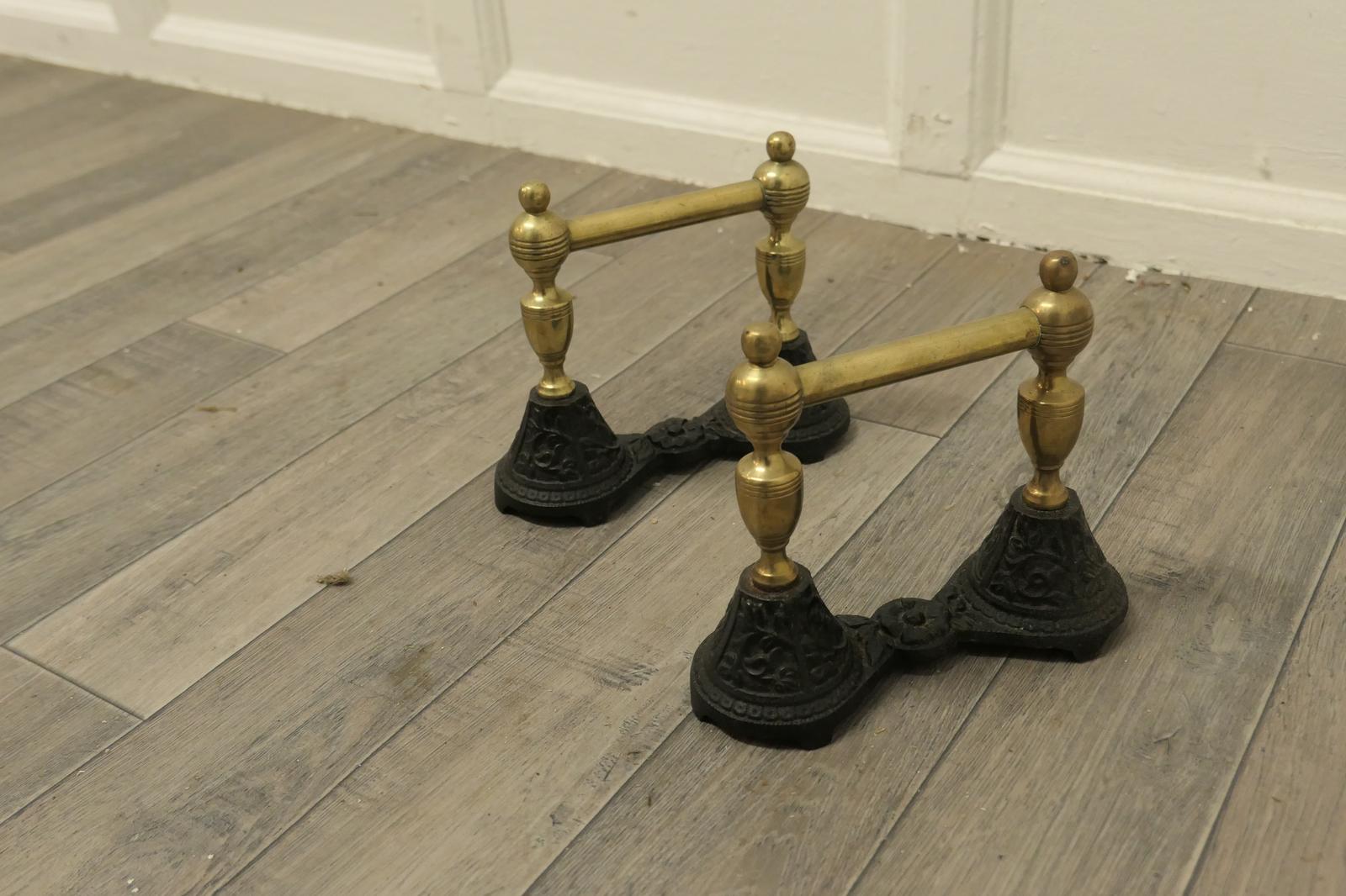 Pair of Victorian Brass & Iron Andirons or Fire Dogs