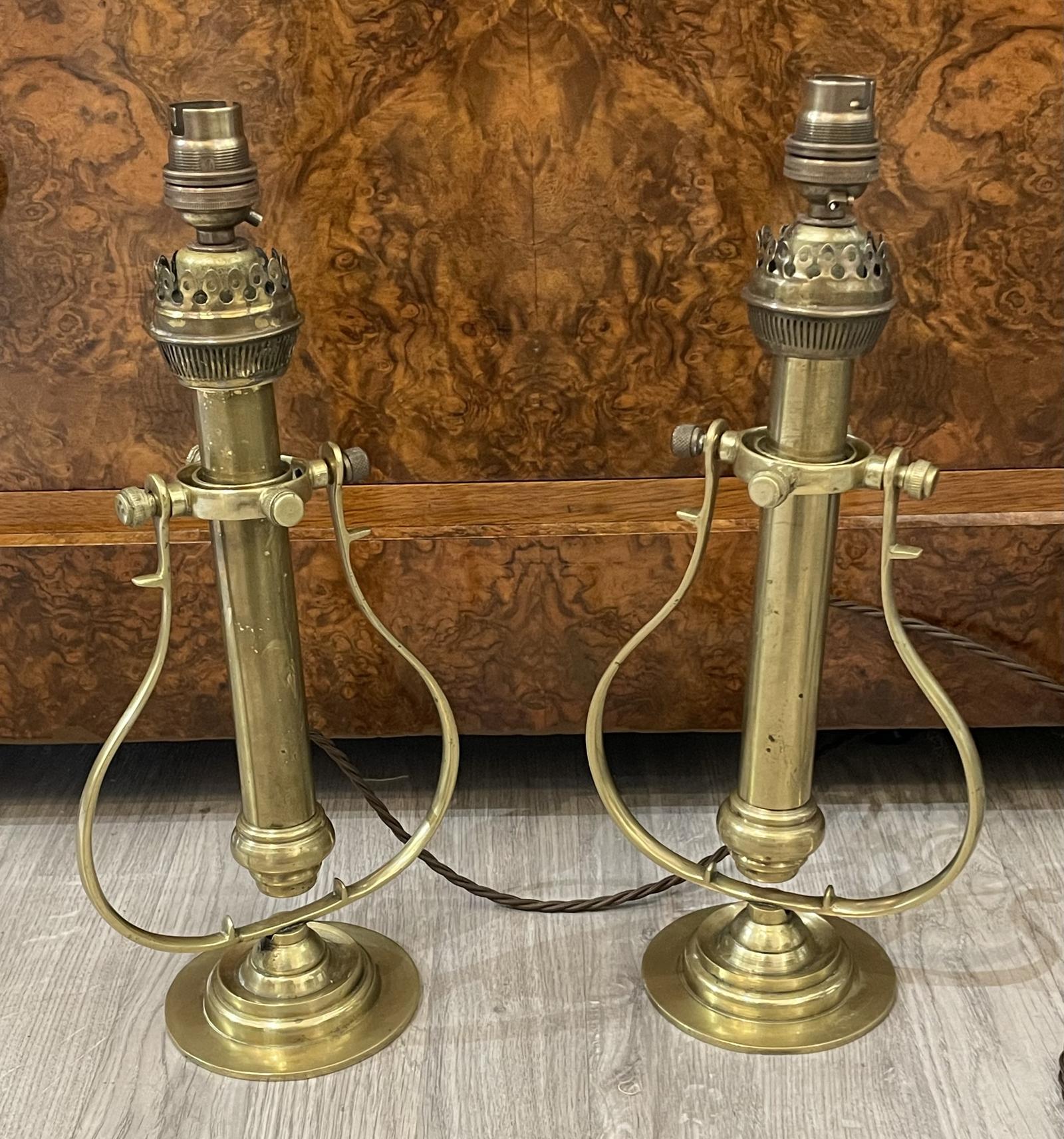 Pair of Victorian Brass Ship Gimbal Table Lamps