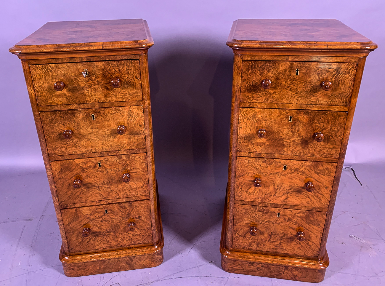 Pair of Victorian Burr Walnut Bedside Chests