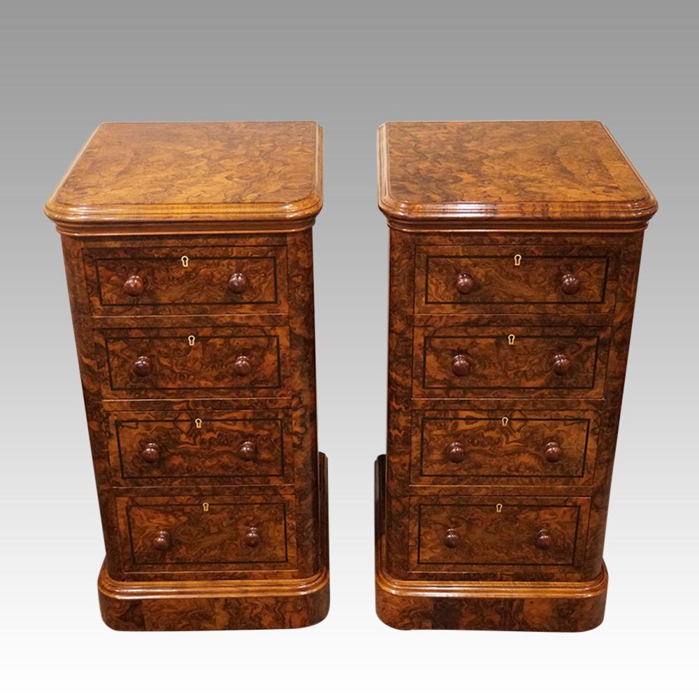 Pair of Victorian Burr Walnut Bedside Chests (1 of 8)