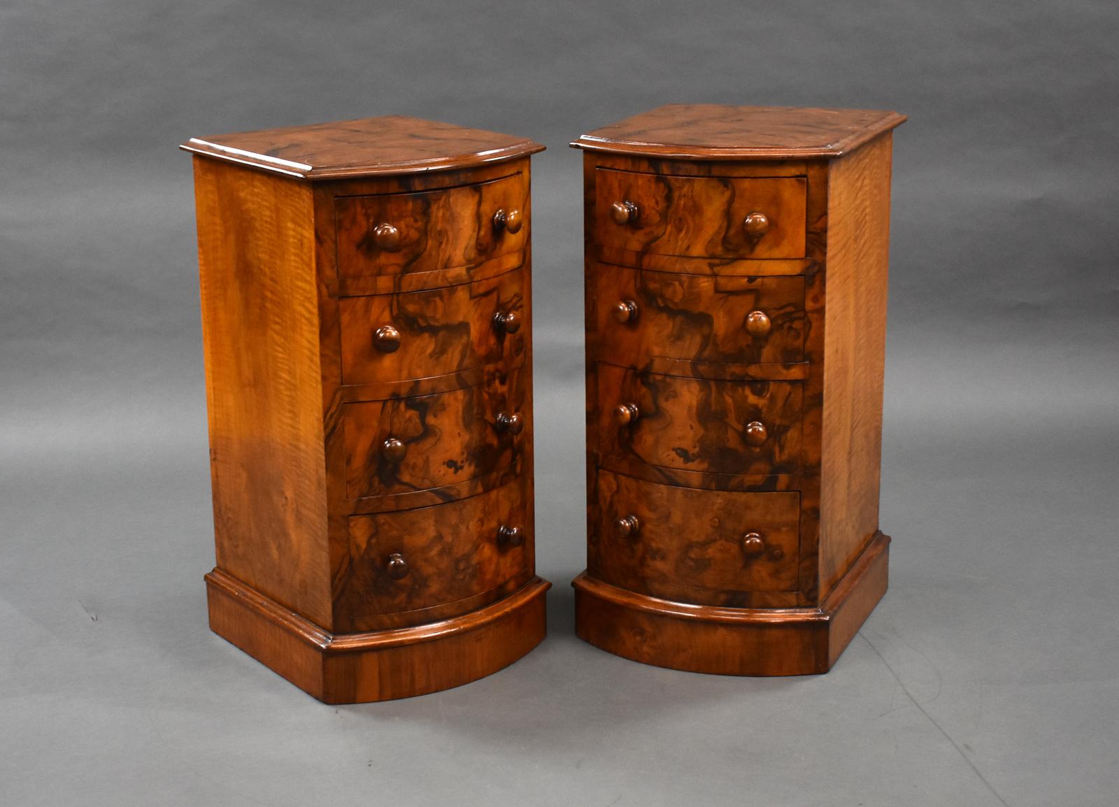 Pair of Victorian Burr Walnut Bow Front Bedside Chests