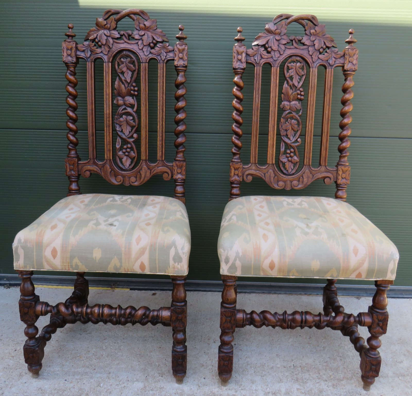 Pair of Victorian Carved Oak Hall Chairs