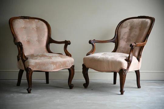 Pair of Victorian Carved Rosewood Armchairs (1 of 13)