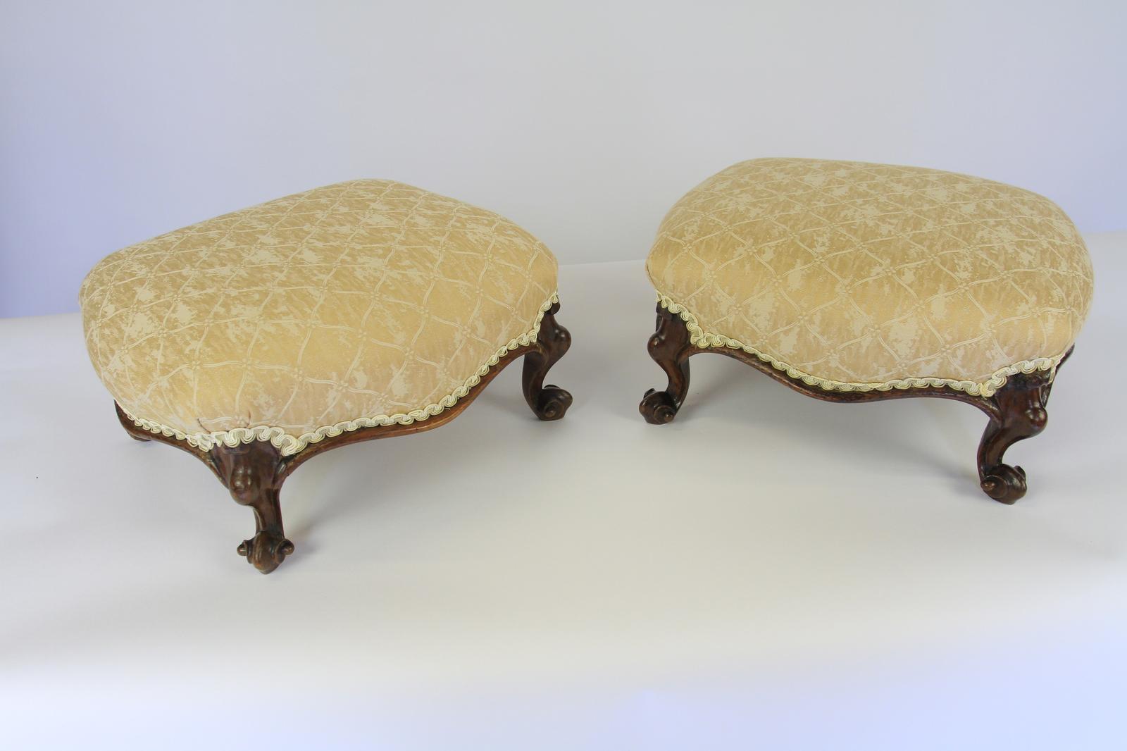 Pair of Victorian Carved Walnut Foot Stools (1 of 6)