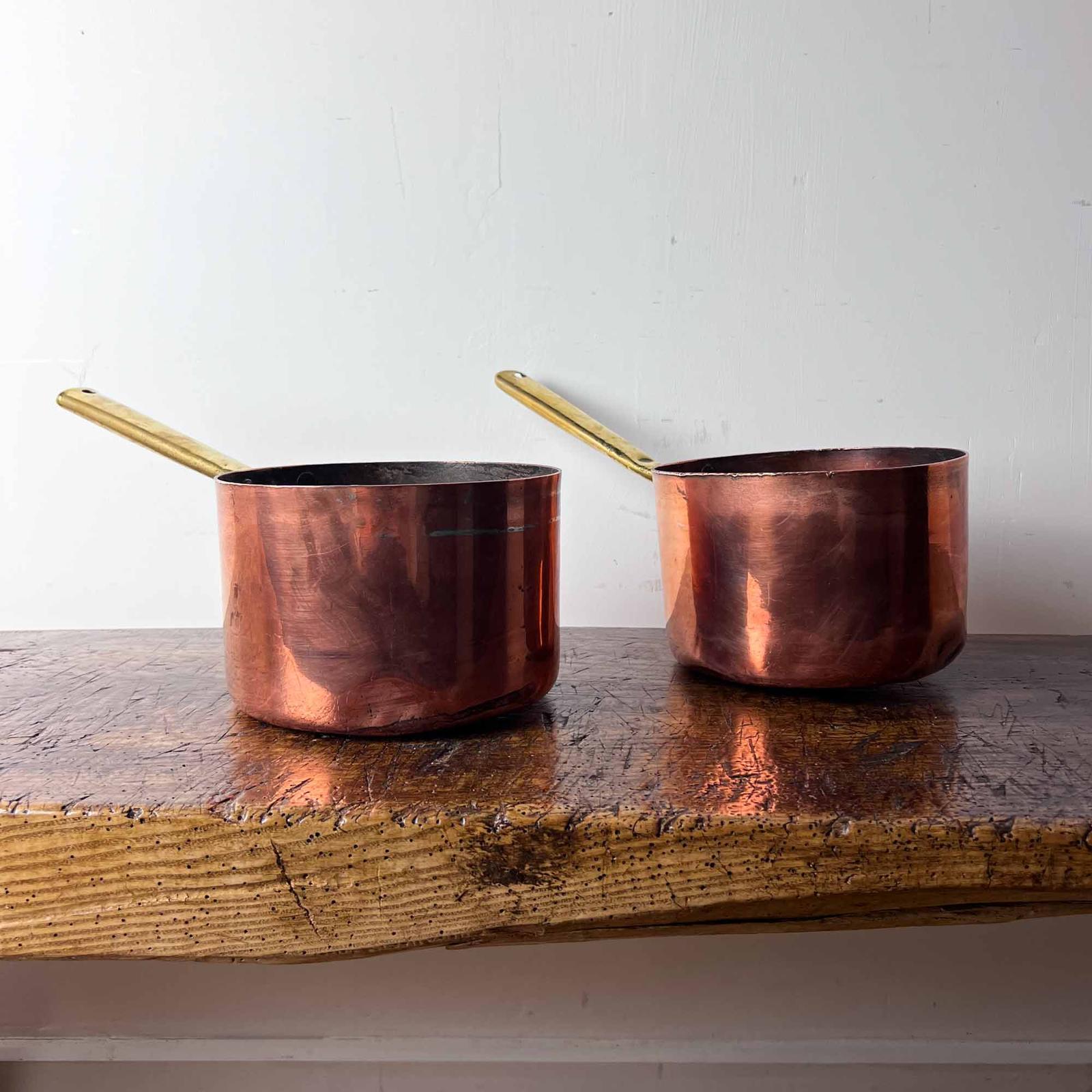 Pair of Victorian Copper Pans with Brass Handles