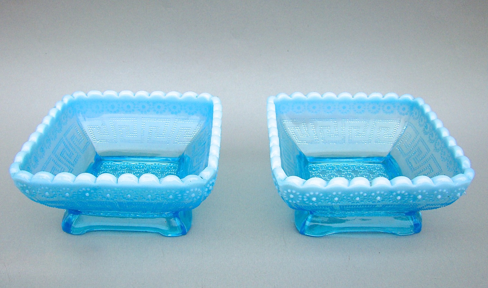 Pair of Victorian Davidson Blue Pearline Glass Dishes c.1890