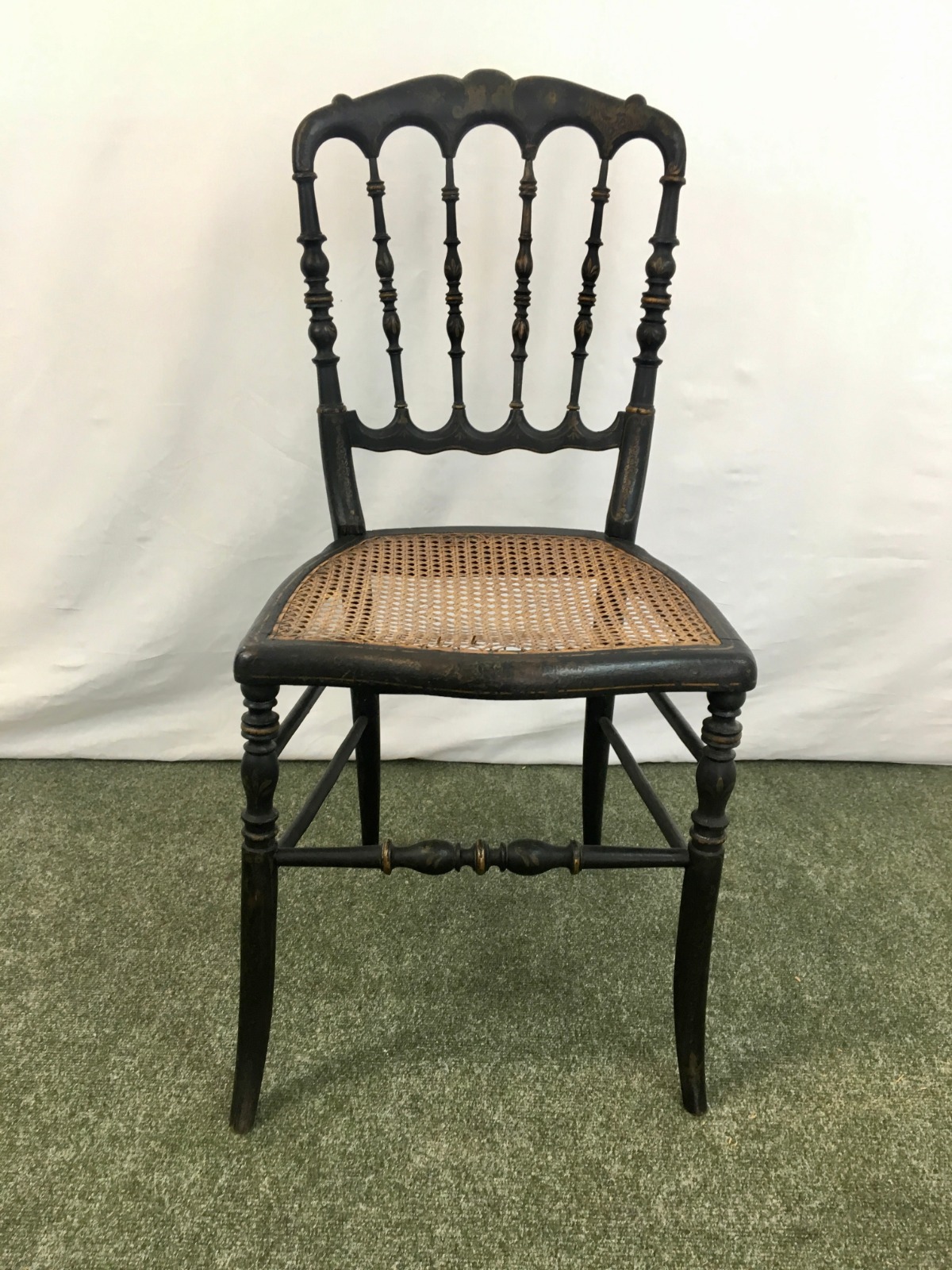 Pair of Victorian Ebonised & Decoratively Painted Dainty Bedroom Chairs