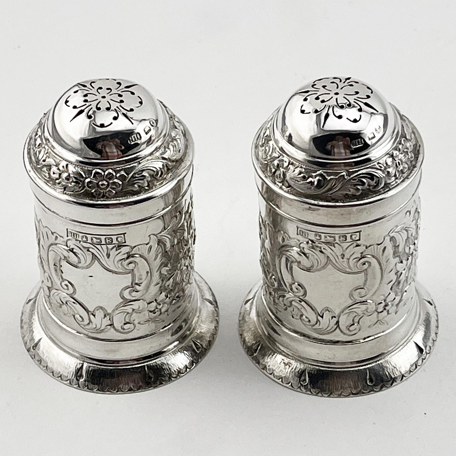 Pair of Victorian Embossed Sterling Silver Pepper Pots (1 of 4)
