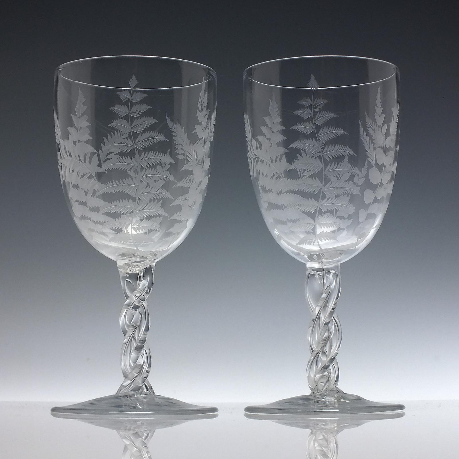 Pair of Victorian Engraved Glass Wine Goblets c.1900