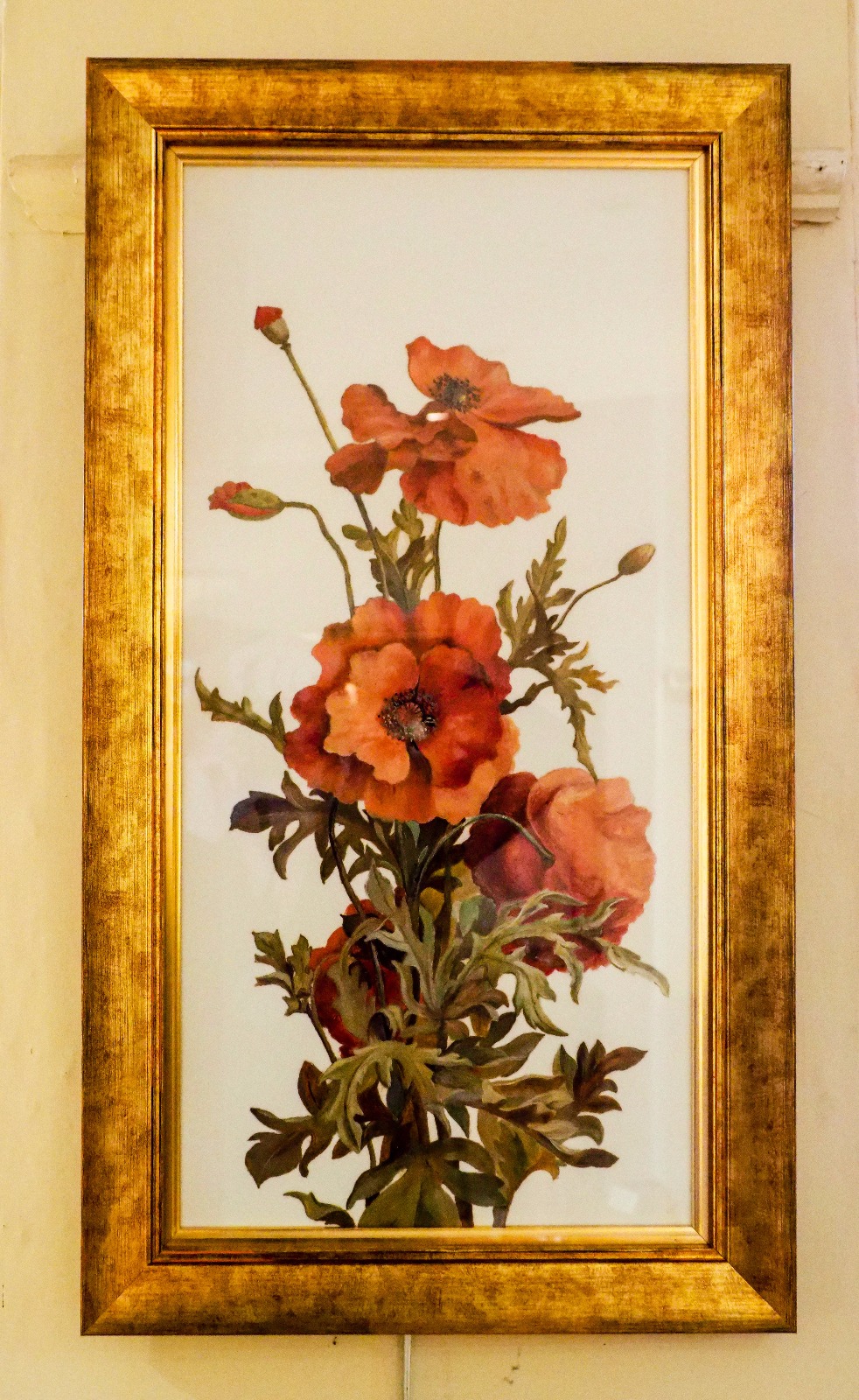 Pair of Victorian Floral Oil Paintings on Milk Glass