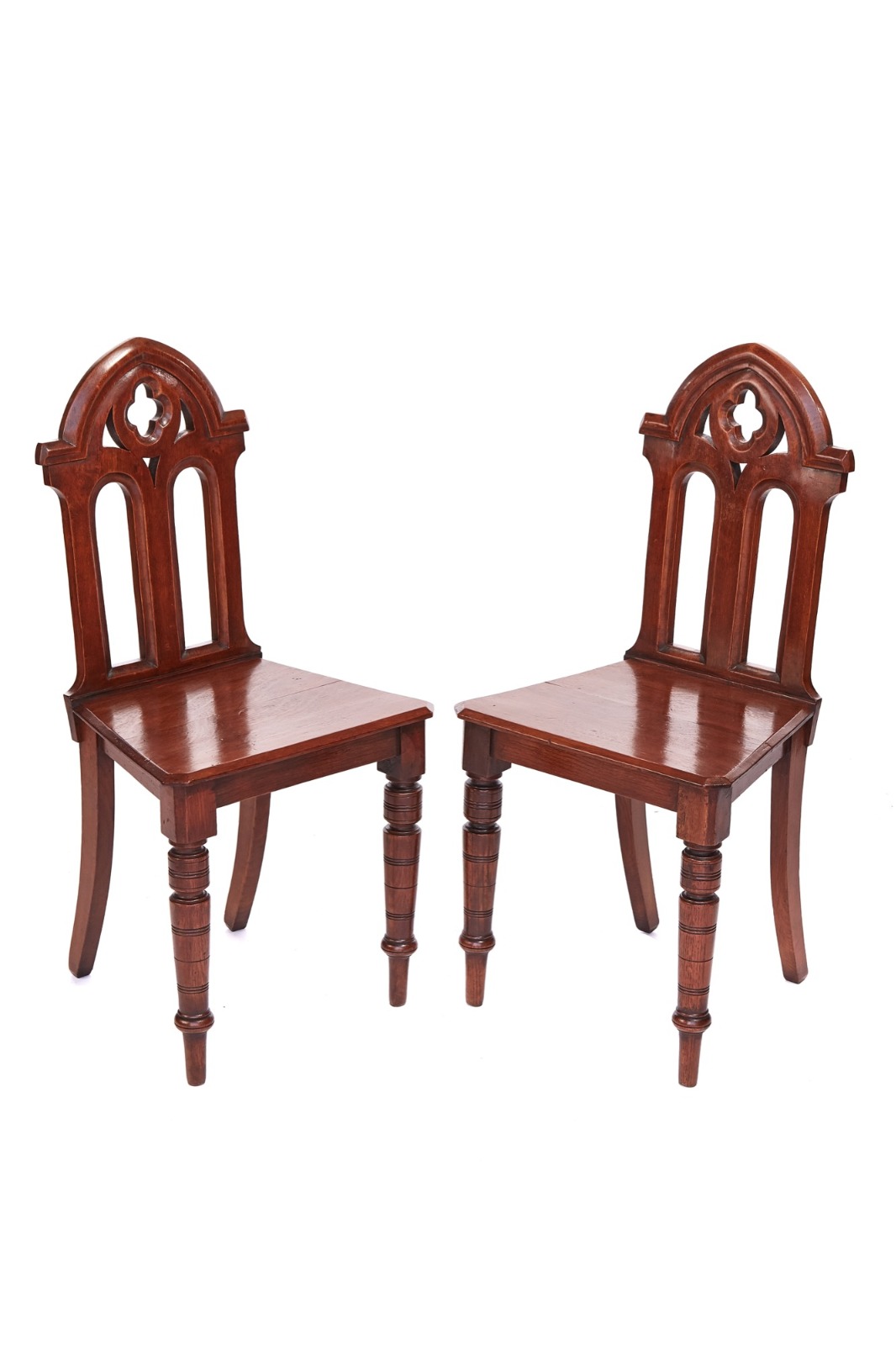 Pair of Victorian Gothic Oak Hall Chairs c.1880