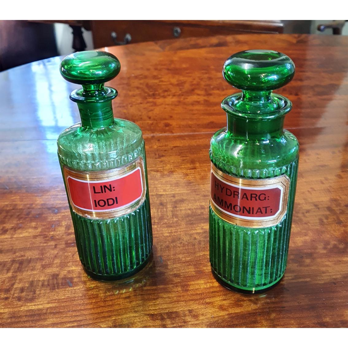 Pair of Victorian Green Glass Poison Bottles (1 of 6)