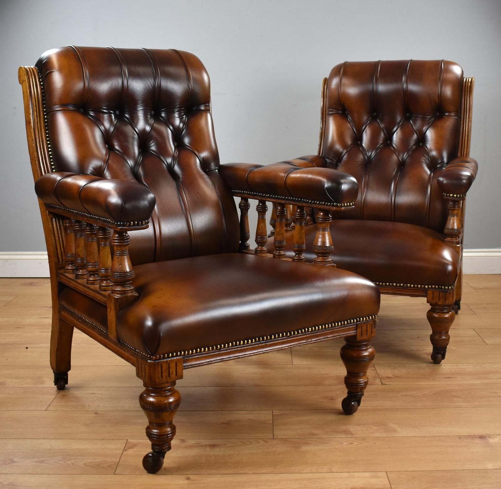 Pair of Victorian Hand Dyed Leather Library Chairs