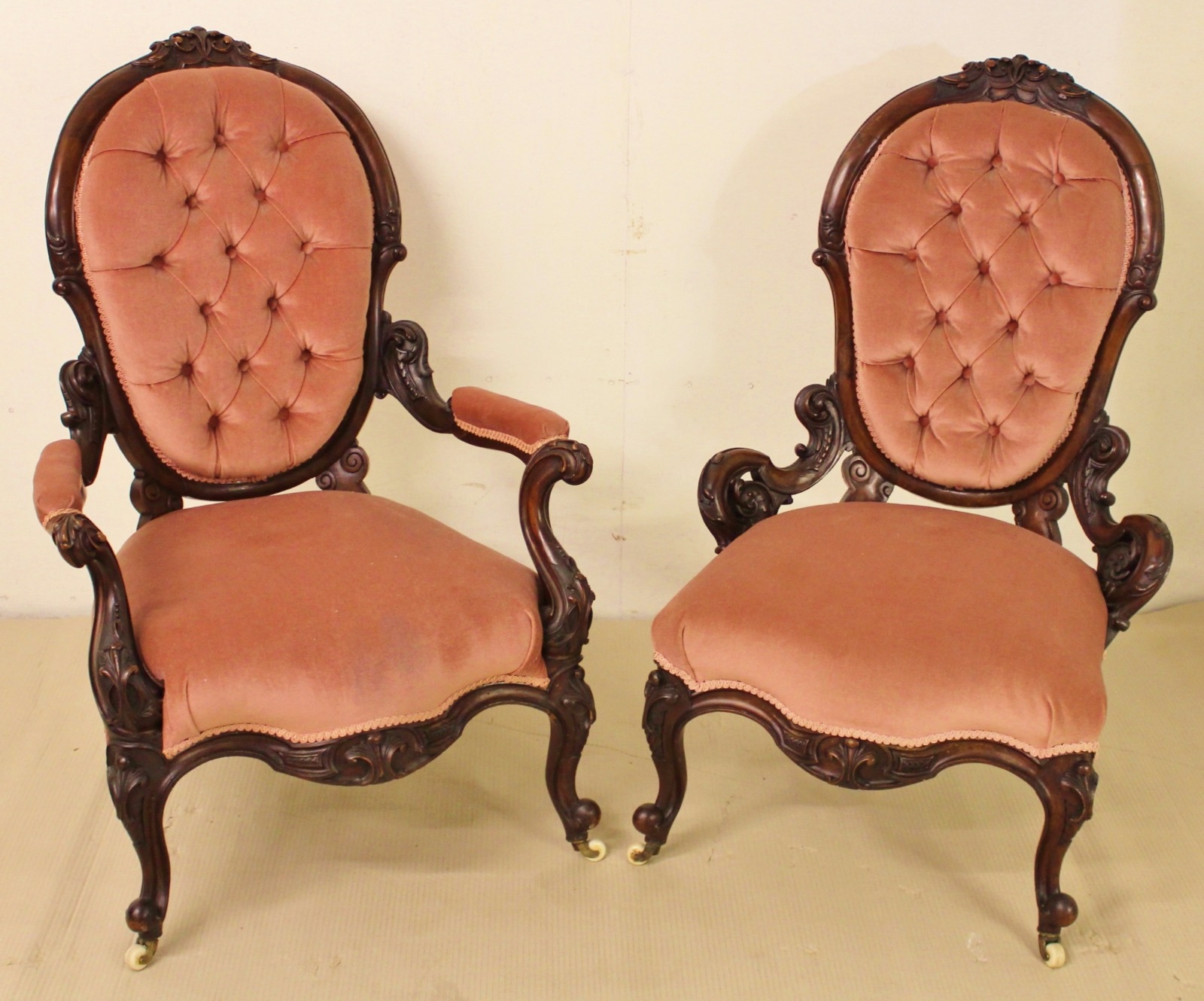 Pair of Victorian His & Hers Upholstered Armchairs (1 of 1)