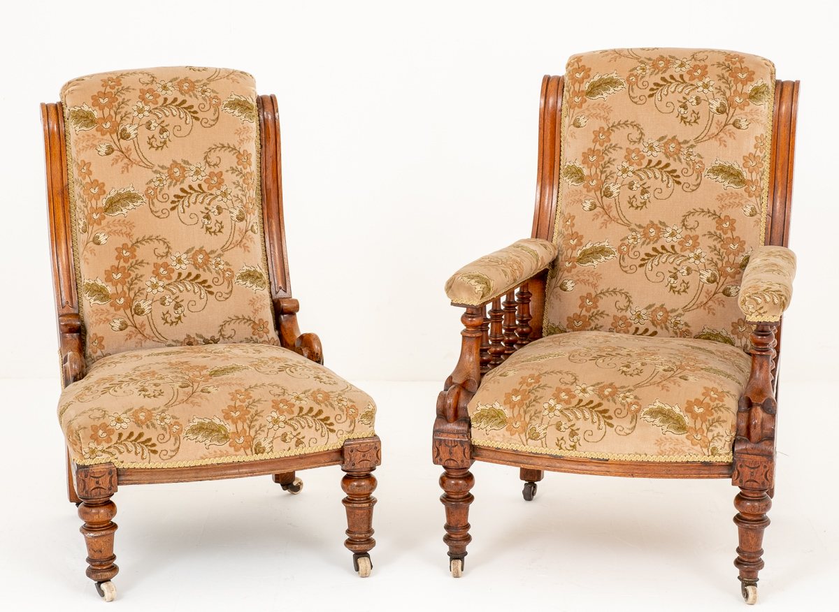 Pair of Victorian Ladies & Gentlemen's Oak Chairs