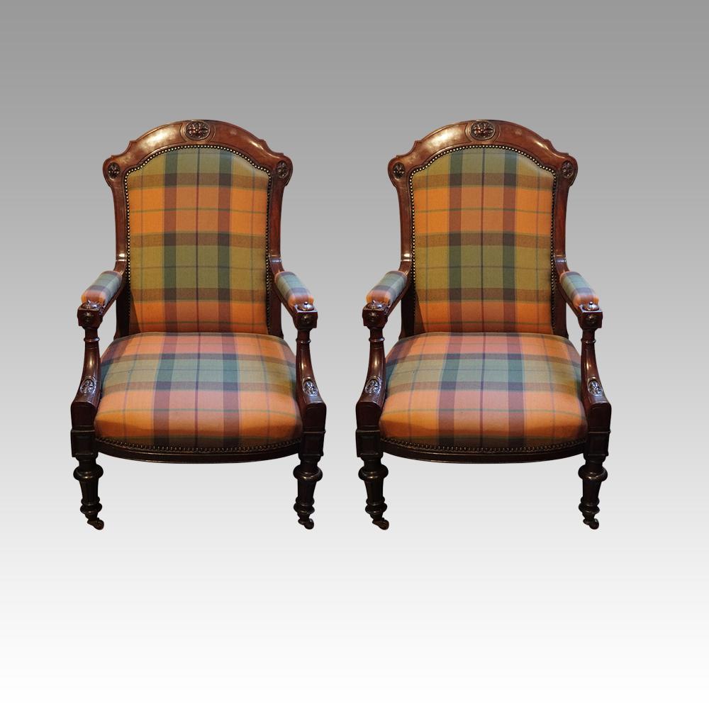 Pair of Victorian Mahogany Easy Chairs (1 of 10)