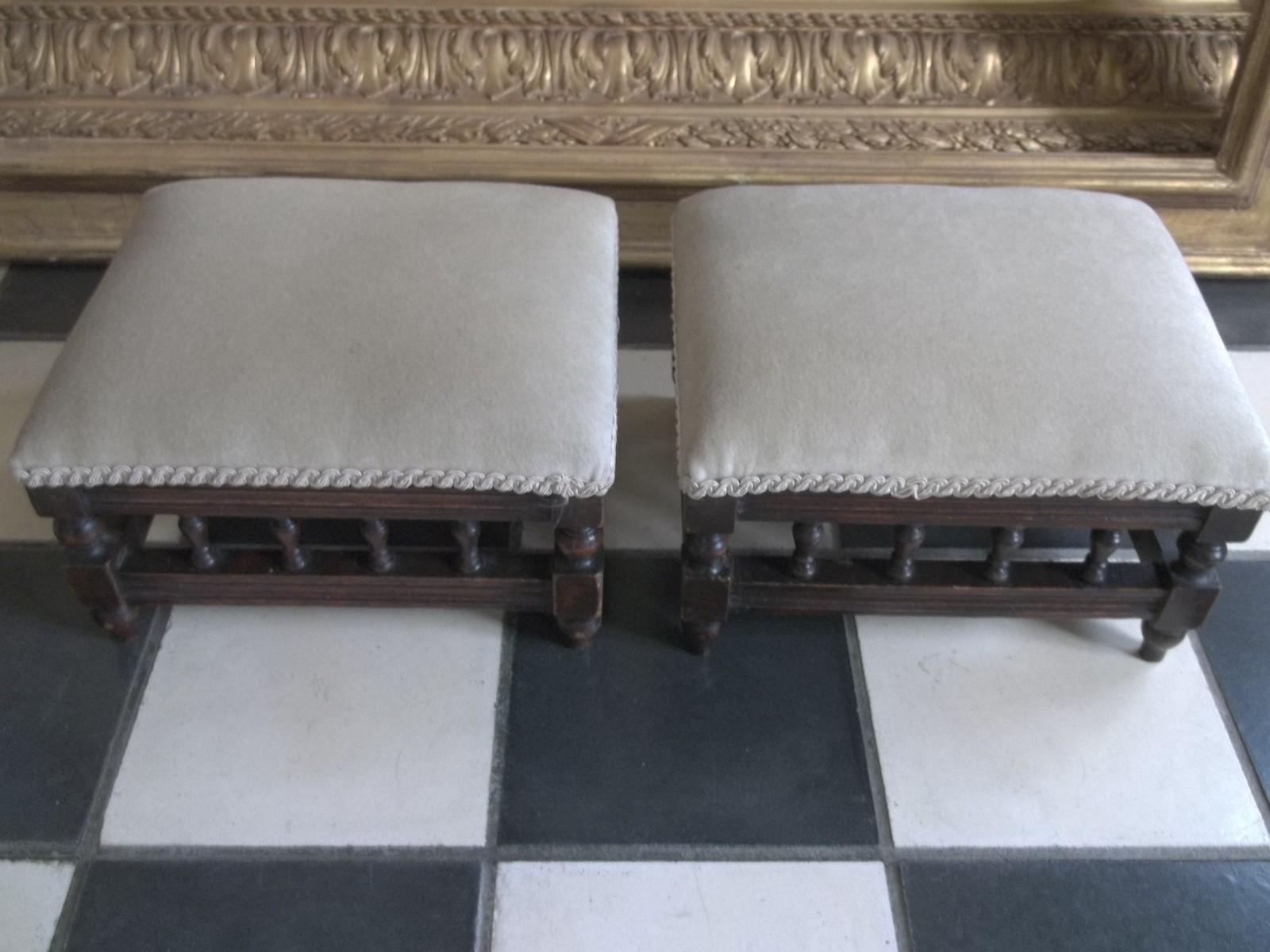 Pair of Victorian Mahogany Galleried Upholstered Footstools