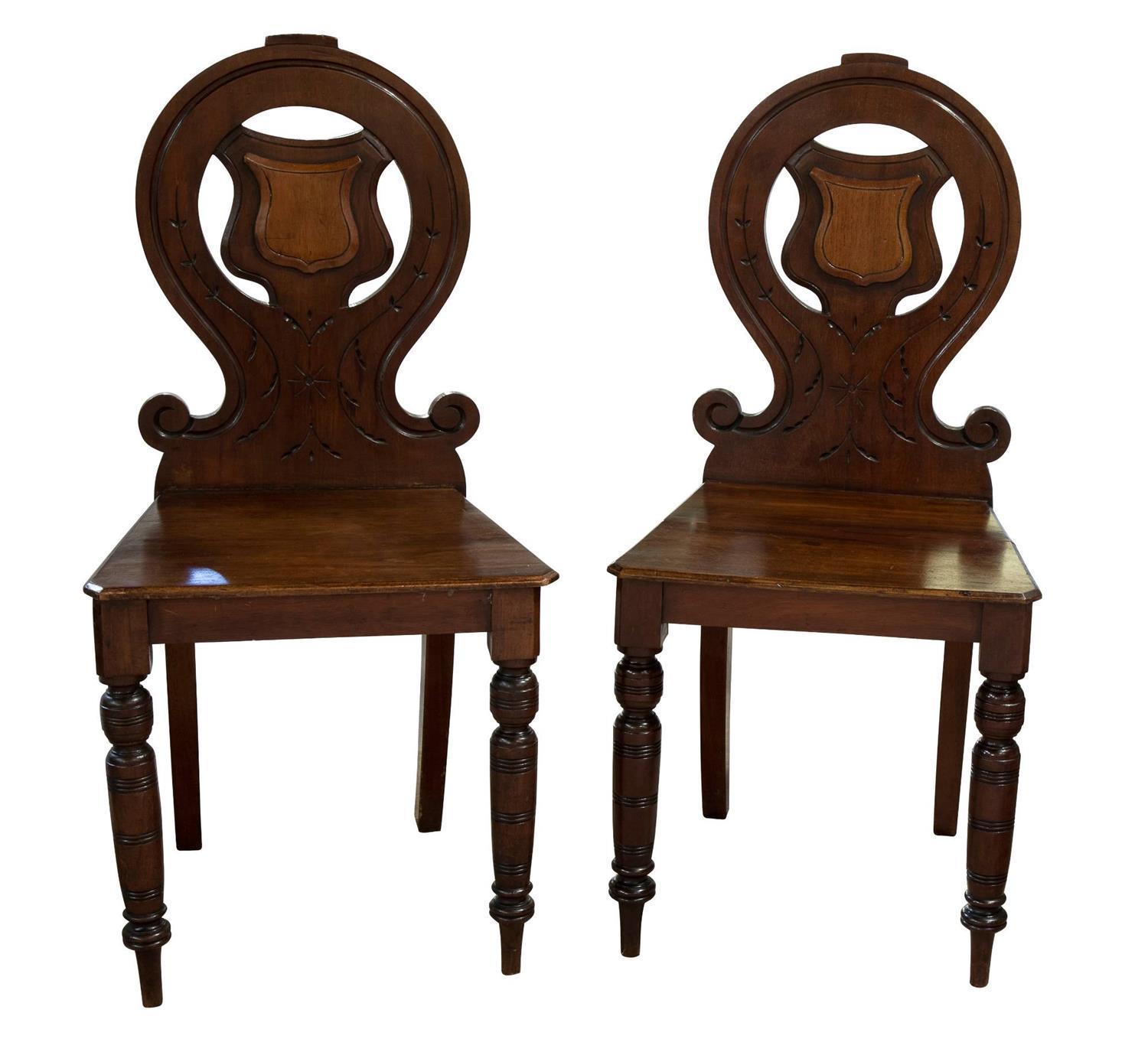 Pair of Victorian Mahogany Hall Chairs (1 of 7)