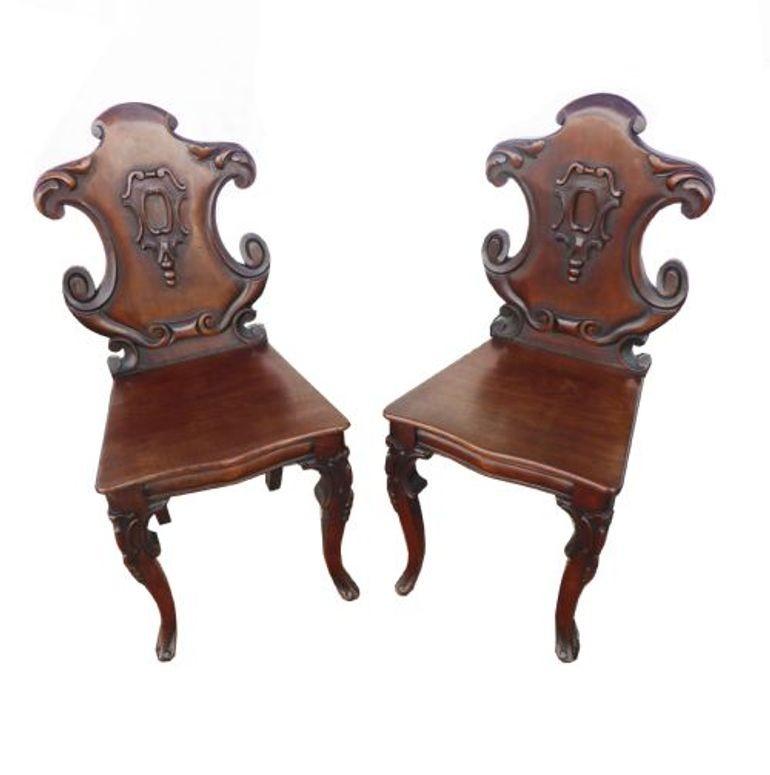 Pair of Victorian Mahogany Hall Chairs