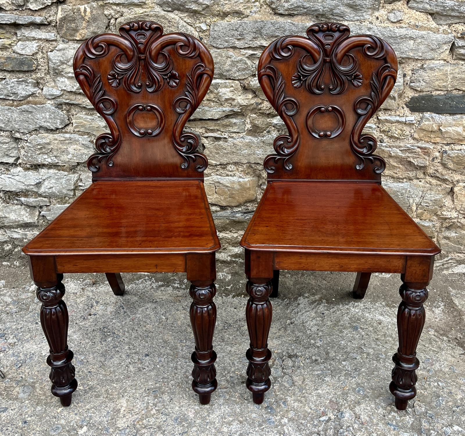 Pair of Victorian Mahogany Hall Chairs