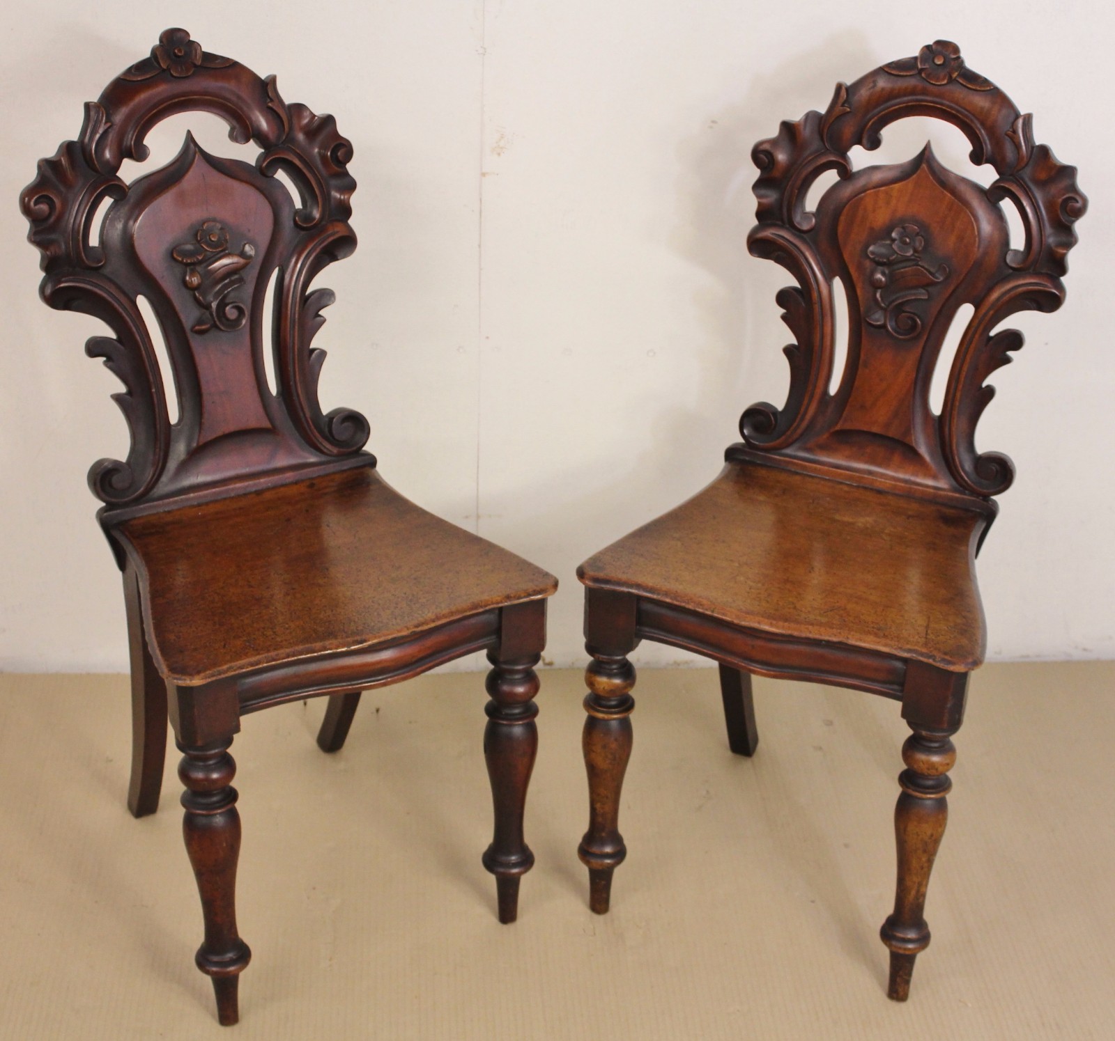 Pair of Victorian Mahogany Hall Chairs c.1850