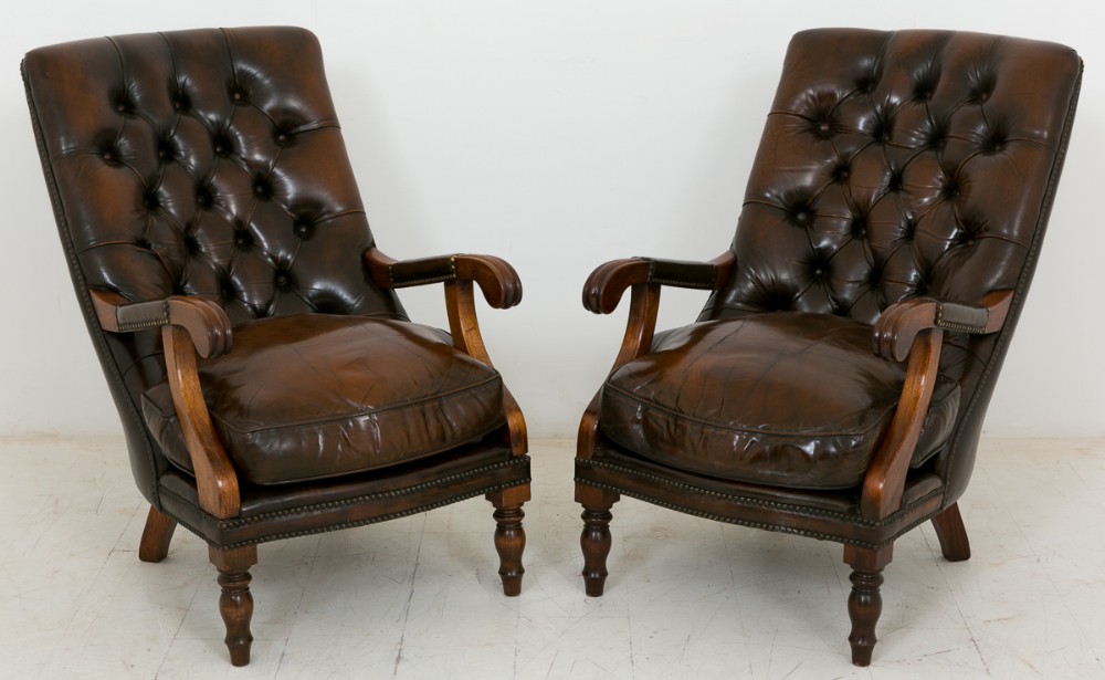 Pair of Victorian Mahogany Open Armchairs c.1870