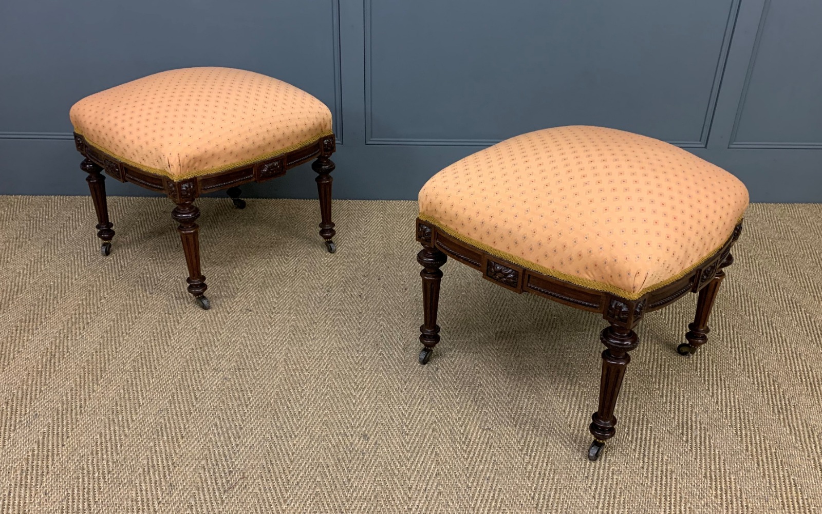 Pair of Victorian Mahogany Upholstered Stools (1 of 14)