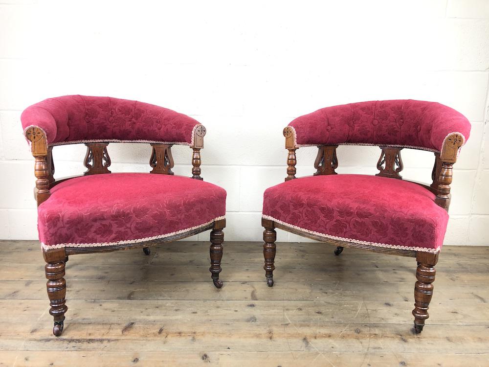 Pair of Victorian Mahogany Upholstered Tub Chairs (1 of 15)