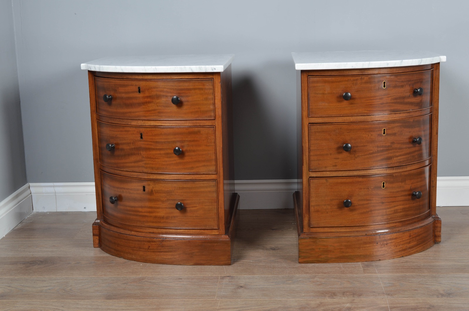 Pair of Victorian Marble Top Bow Front Bedside Chests of Drawers