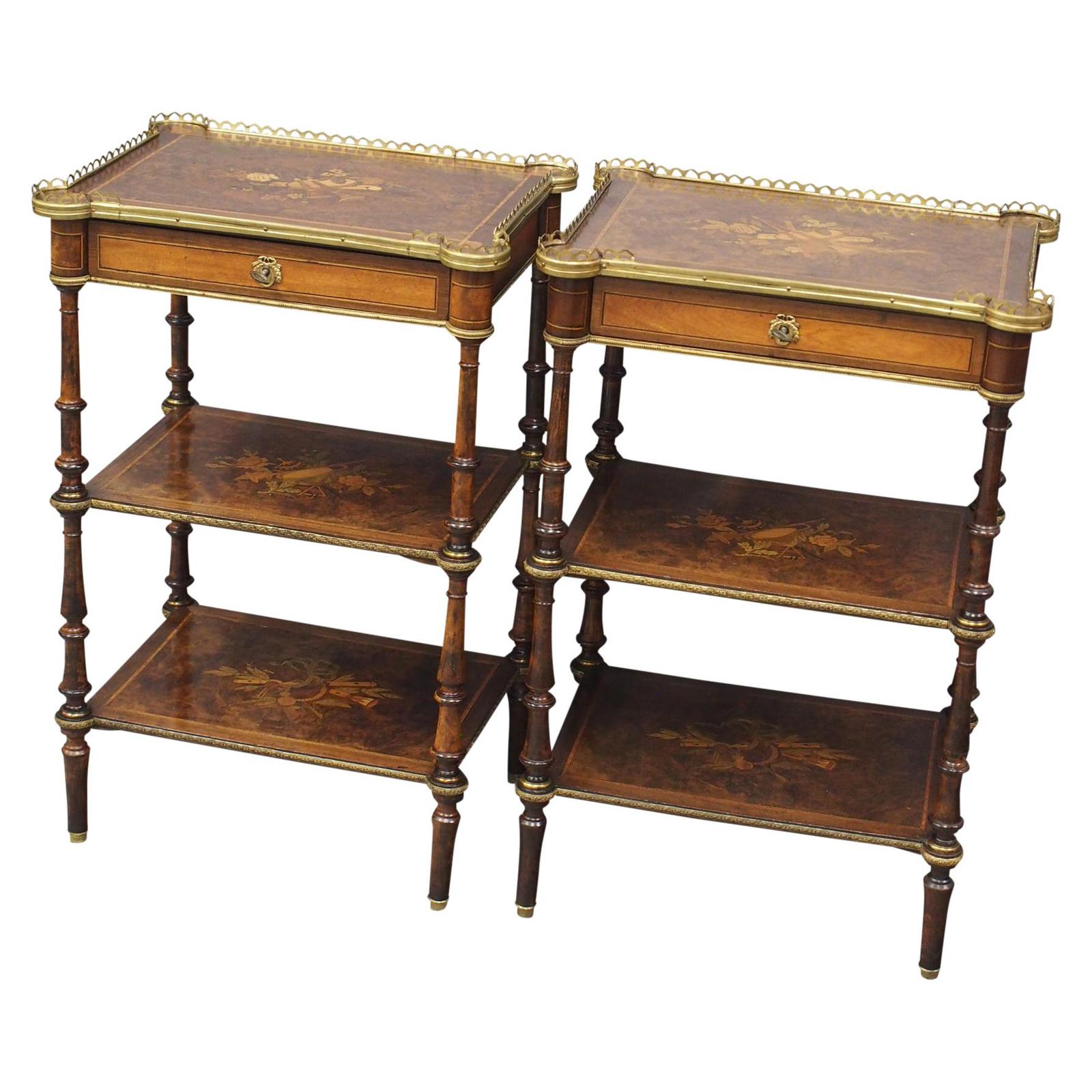 Pair of Victorian Marquetry Burr Walnut Etageres