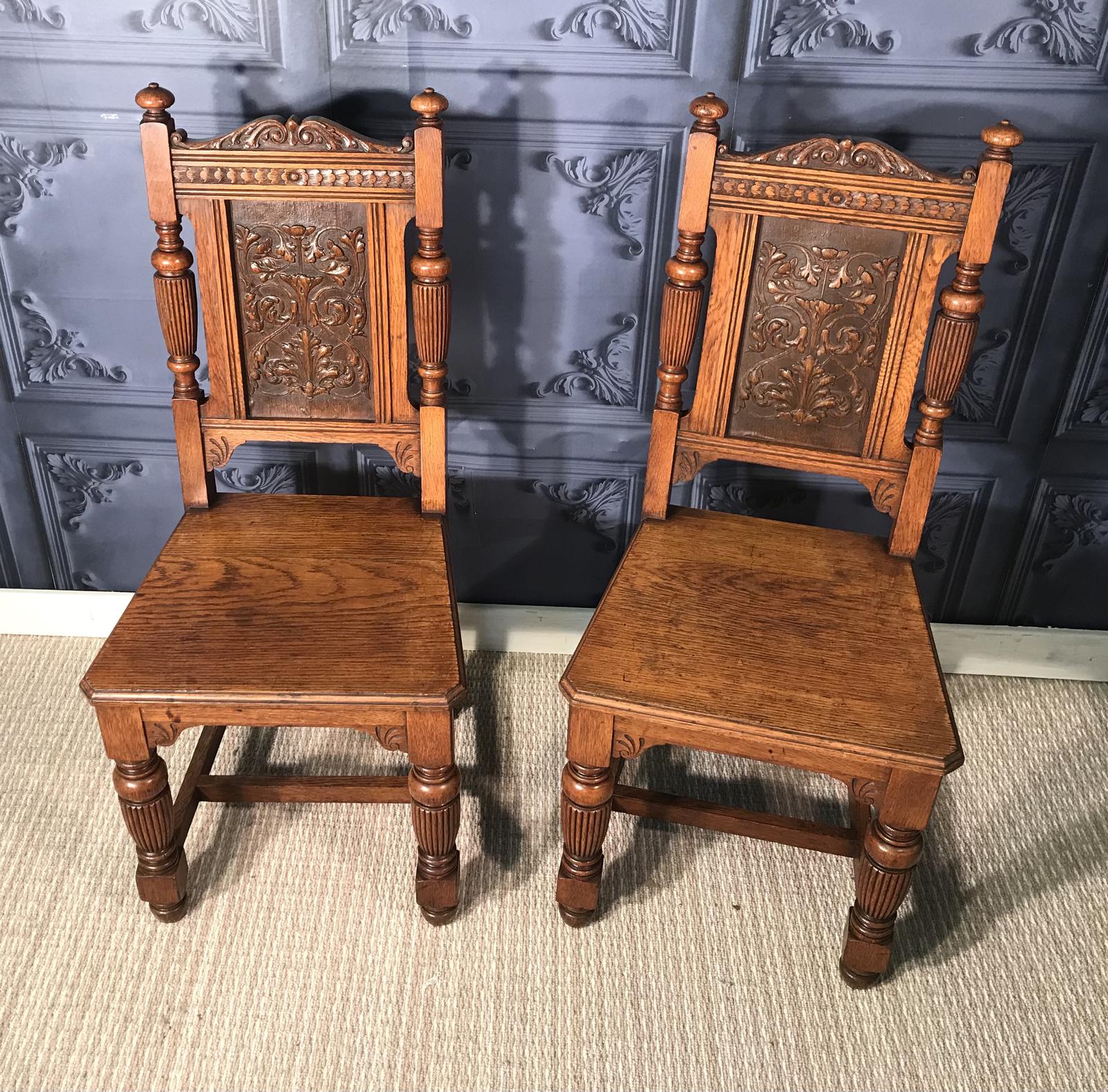 Pair of Victorian Oak Hall Chairs