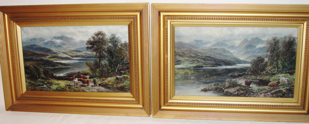 Pair of Victorian Oils on Canvas of 'Highland Scenes' c.1890