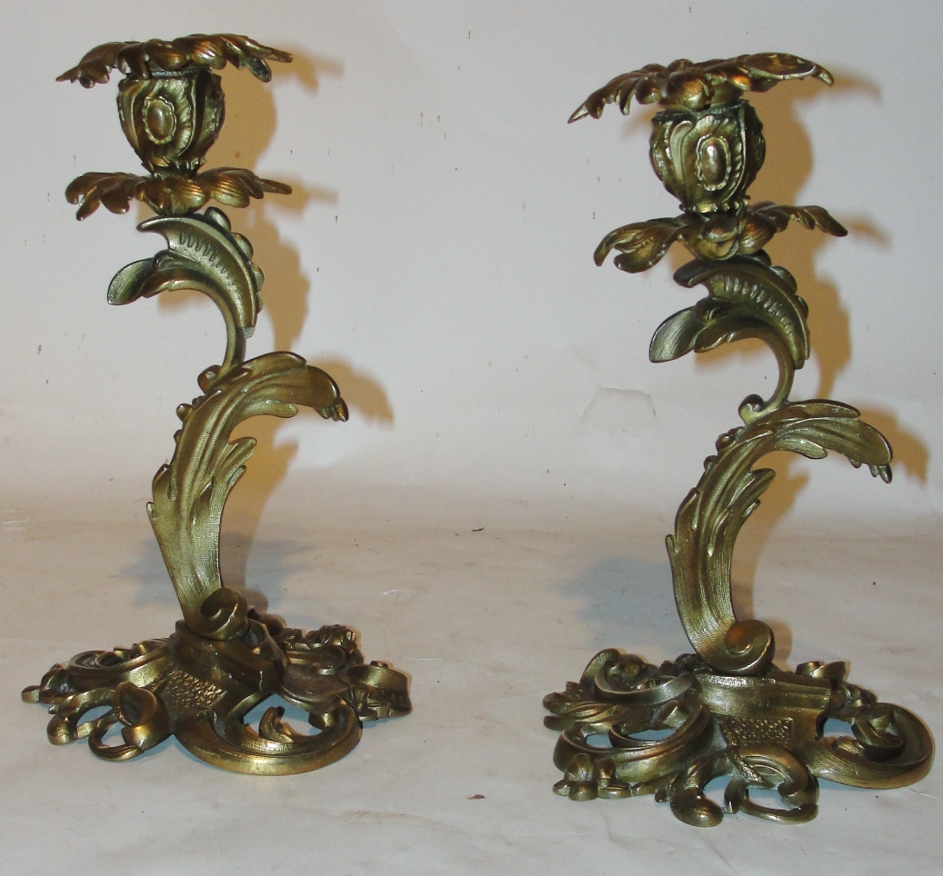 Pair of Victorian Ormolu Rococo Candlesticks