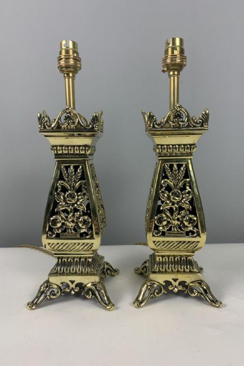 Pair Of Victorian Pierced Brass Table Lamps; Rewired And Pat Tested
