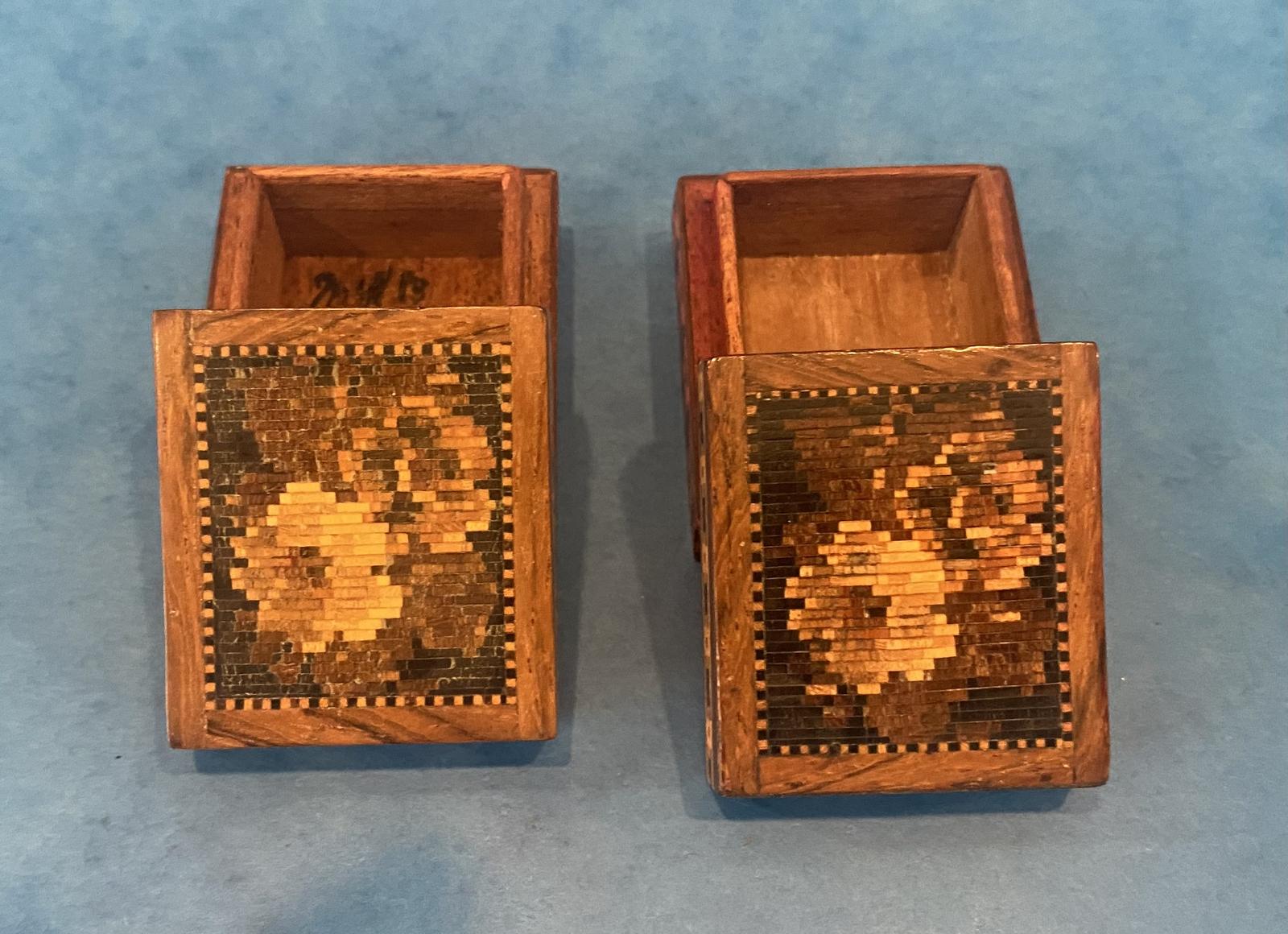 Pair of Victorian Rosewood With Micro Inlaid Tunbridge Ware Stamp Boxes
