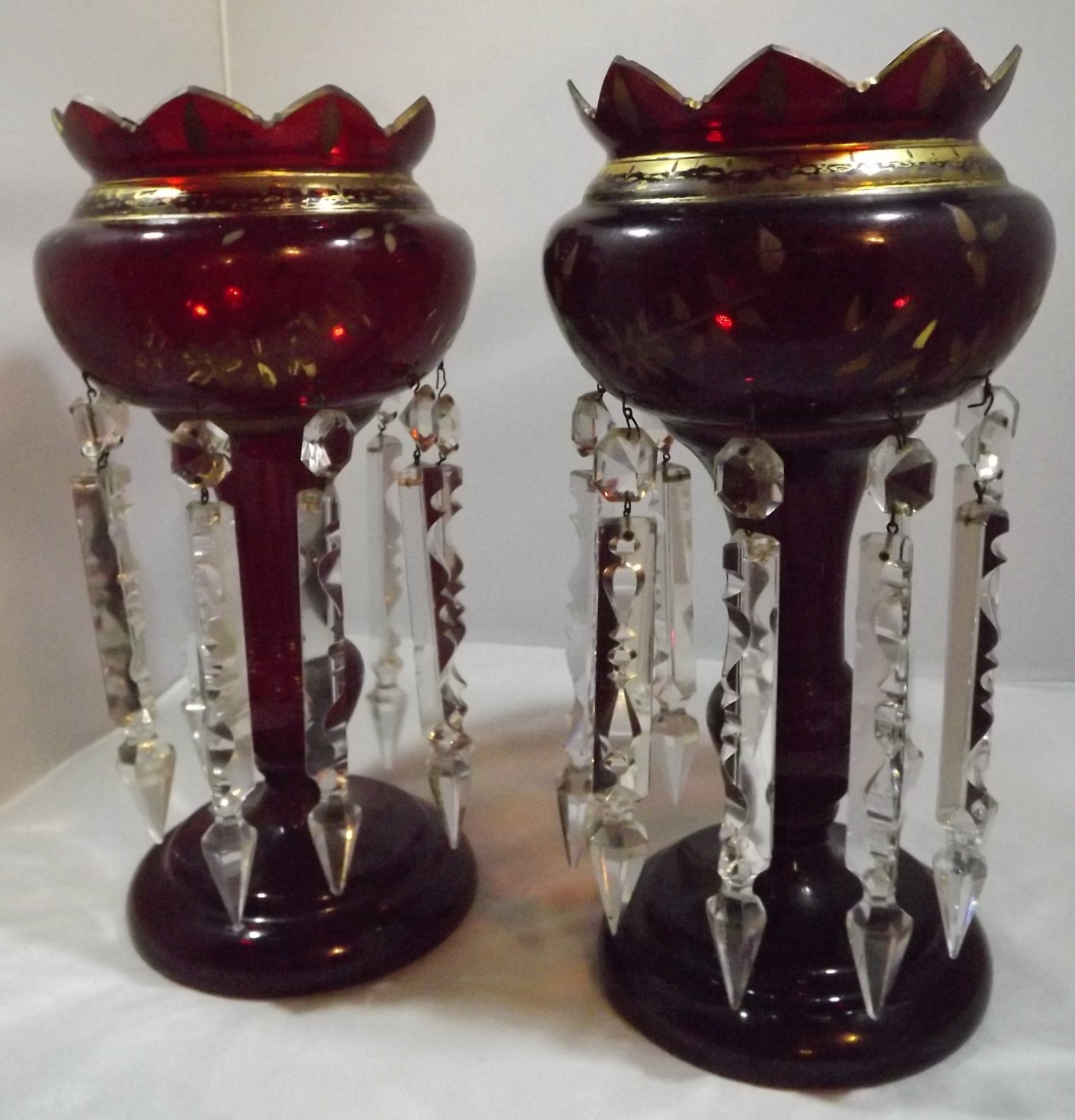 Pair of Victorian Ruby-Coloured Glass Lustres