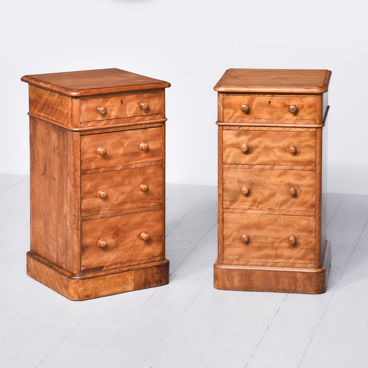 Pair of Victorian Satin Birch Small Chests of Drawers / Bedside Lockers