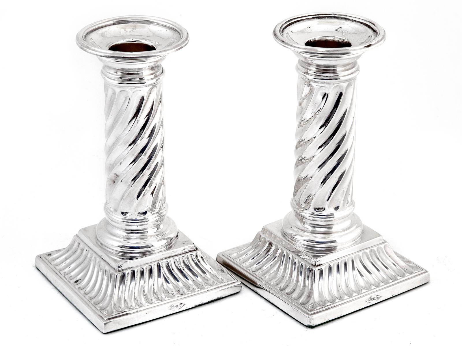 Pair of Victorian Silver Plated Candle Sticks with Spiral Fluted Columns