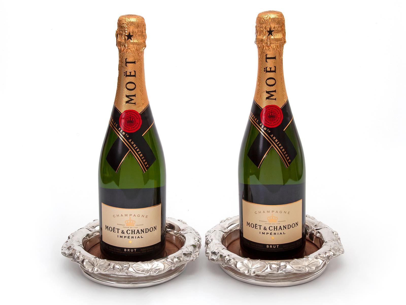 Pair of Victorian Silver Plated Coasters with Embossed Vine Leaf Borders
