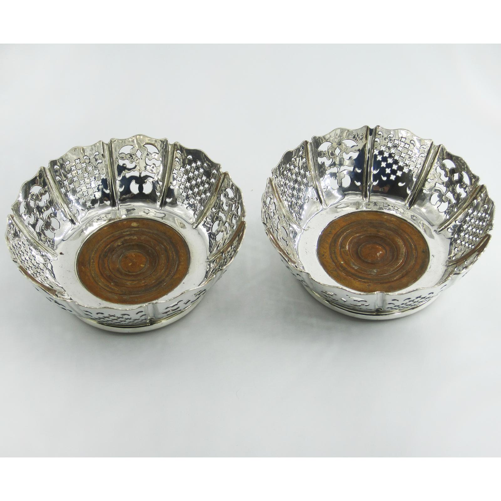 Pair of Victorian Silver Plated Round Deep Dish Shape Coasters
