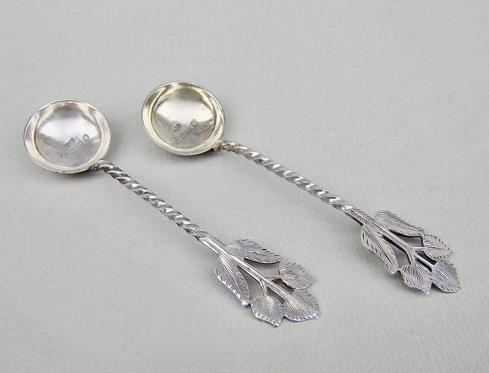 Pair of Victorian Silver Salt Spoons by Hilliard & Thomason, Birmingham 1877