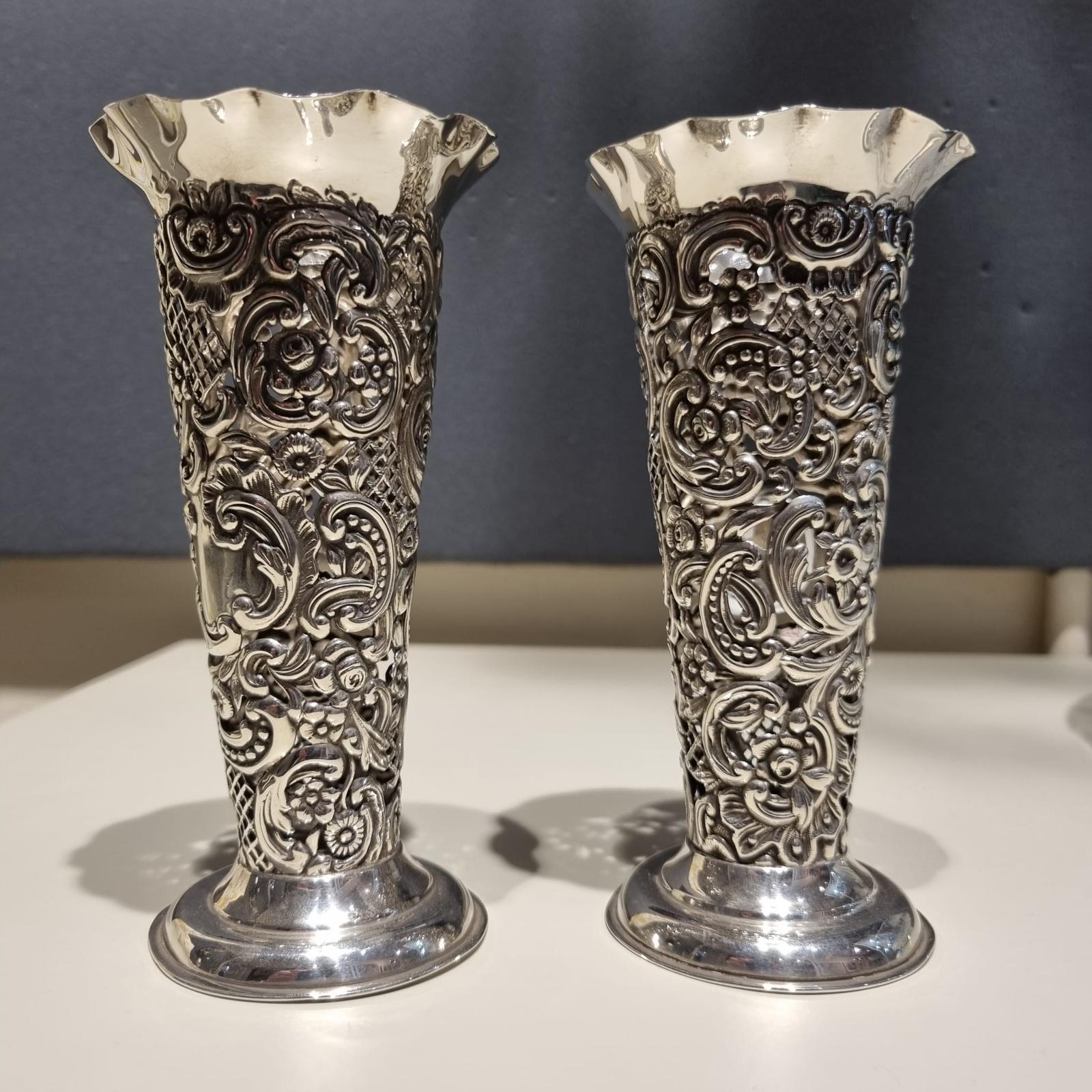 Pair of Victorian Silver Vases by William Comyns, Fully Hallmarked for London 1894