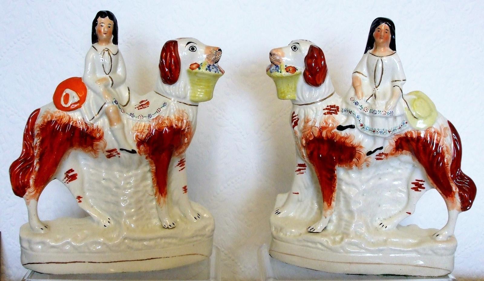 Pair of Victorian Staffordshire Figures ~ "Children on Setters"