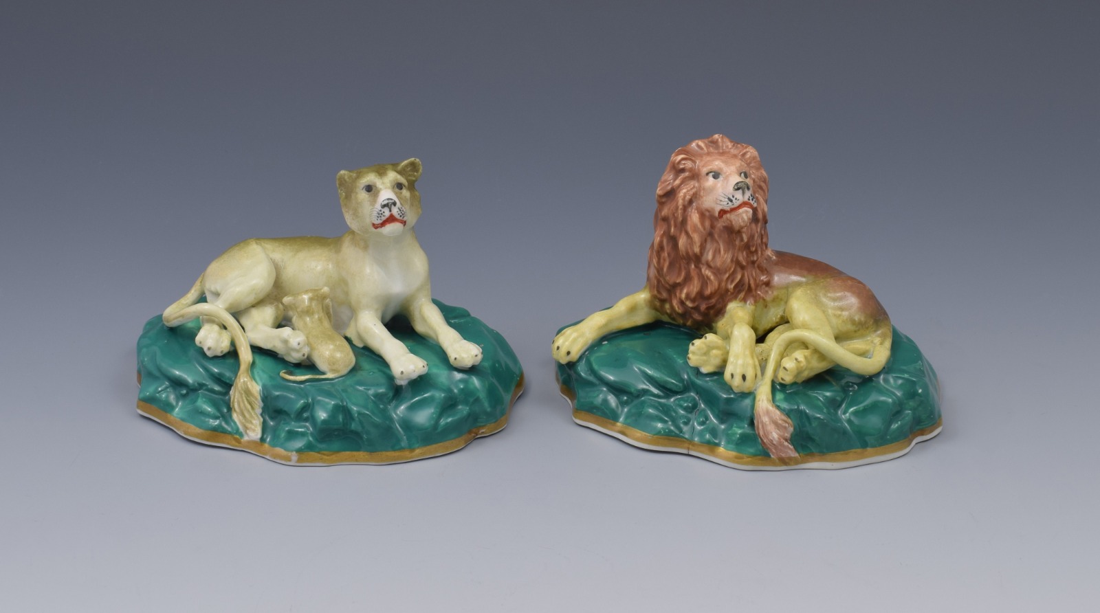 Pair of Victorian Staffordshire Porcelain Lion & Lioness Figures c.1840