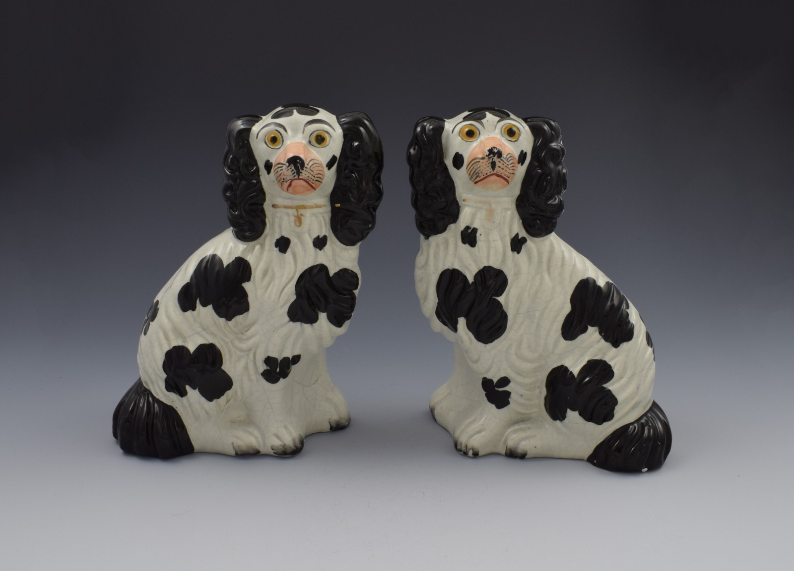 Pair of Victorian Staffordshire Spaniels Dogs No. 4 Black & White c.1860 (1 of 1)