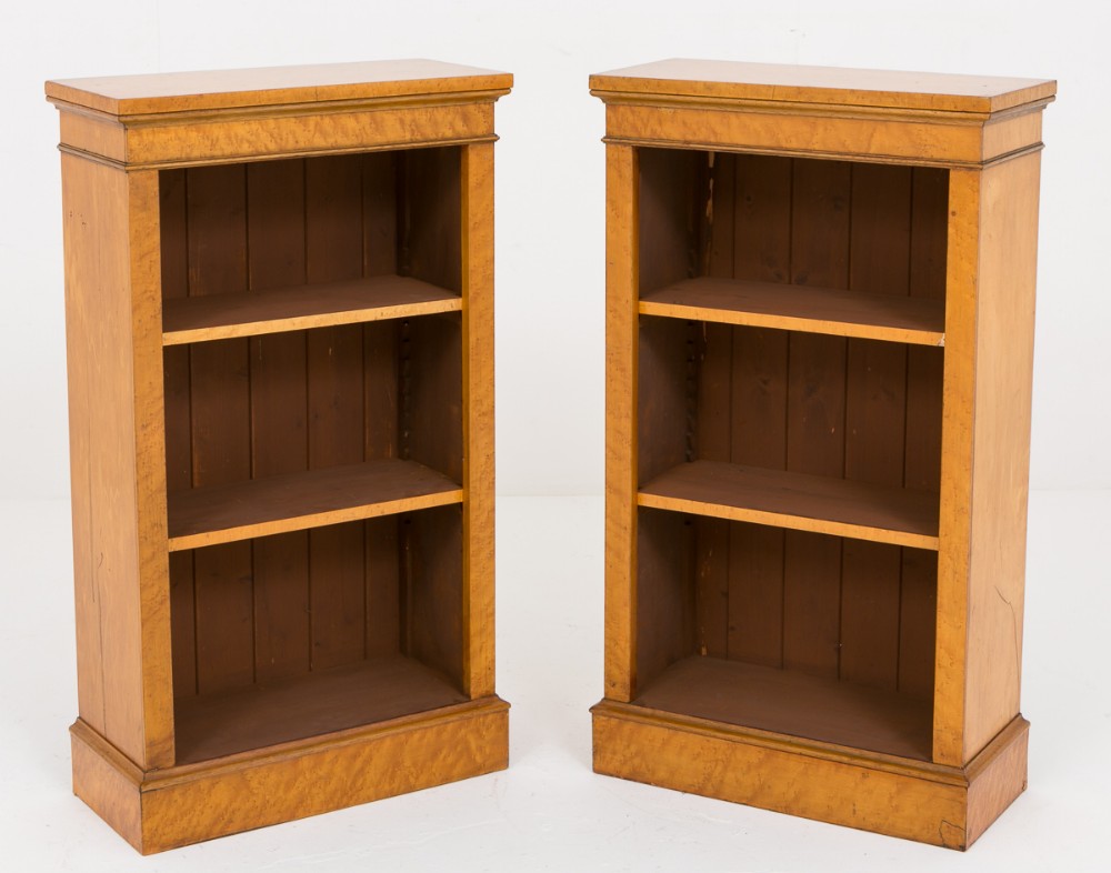 Pair of Victorian Style Birdseye Maple Open Bookcases (1 of 1)