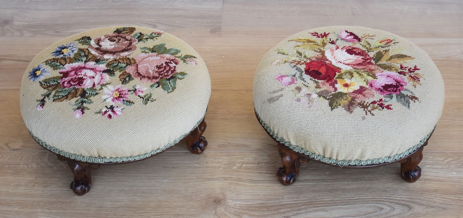 Pair of Victorian Tapestry Upholstered Foot Stools