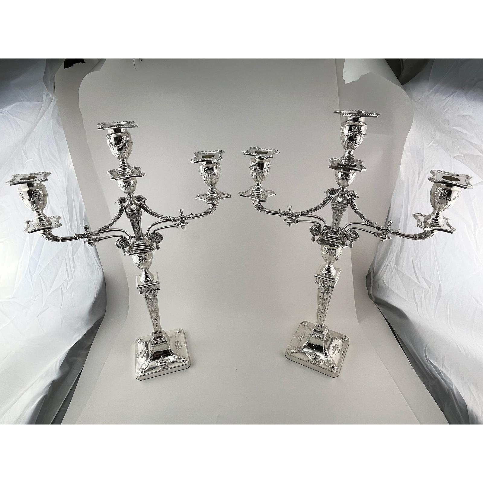 Pair of Victorian Three Light Silver Plated Candelabra
