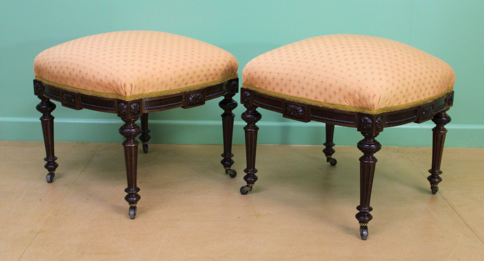 Pair of Victorian Upholstered Mahogany Stools (1 of 11)